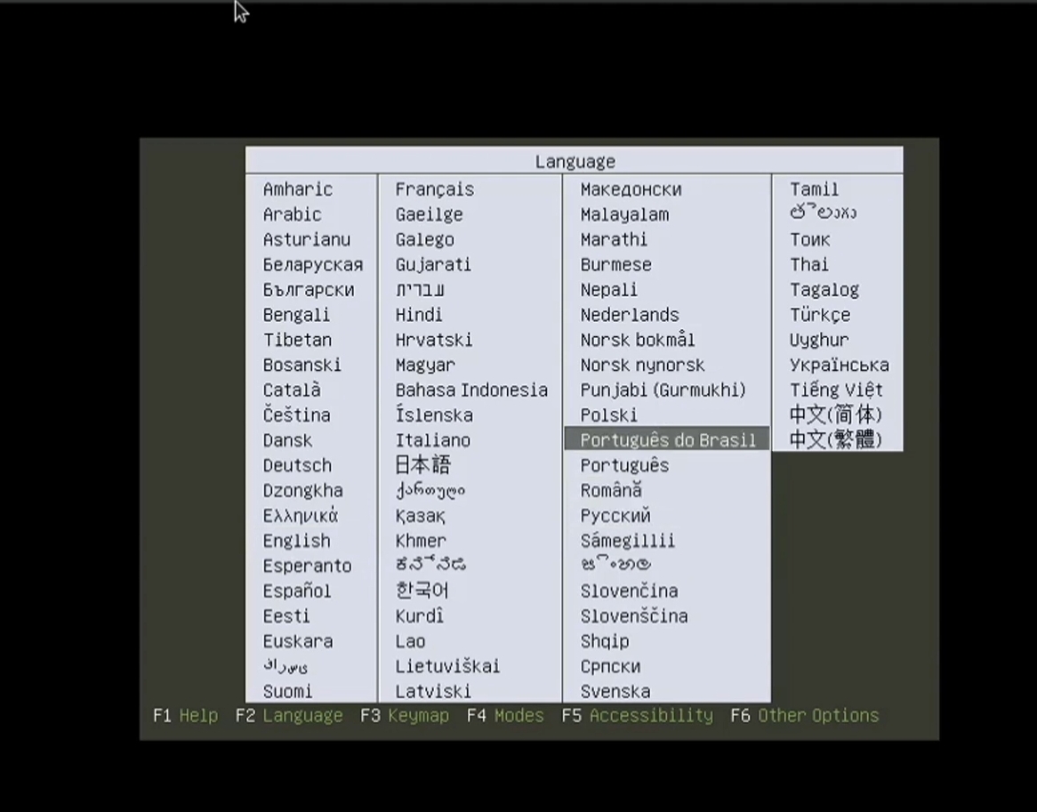 proceder com a escolha de idioma como se vê na imagem a seguir.